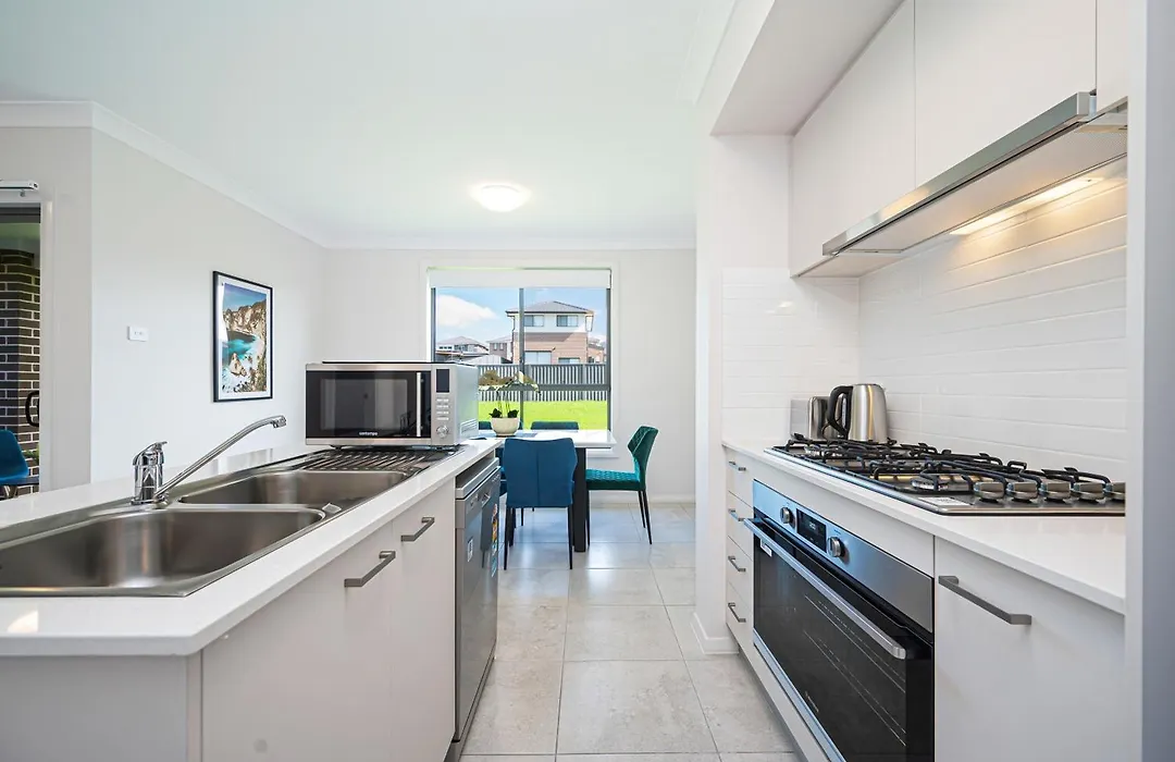 El Apartamento Warm Cozy 5Br House Near Train Station & Coles dispone de una cocina completa y una zona de comedor. La parada de autobús Ingleburn Rd after Byron Rd está cerca de esta propiedad.